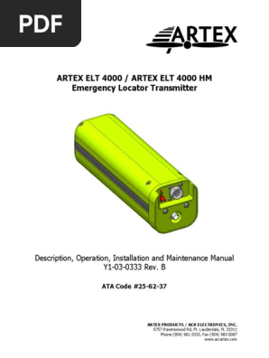 Component labeled part no. System description the artex 110 406 nav series is a third generation elt transmitting on 1215 2430 and 406025 mhz. The artex elt 345 provides a quick and easy retrofit opportunity with flexible installation options such as a two wire remote switch that does not require any aircraft power. View online or download artex elt 345 description operation installation and maintenance manual. Because it is a single output elt the elt 345 utilizes the same rf output and only one coax cable to transmit both 406 mhz and 1215 mhz signals. Lauderdale fl 33312 cage code.