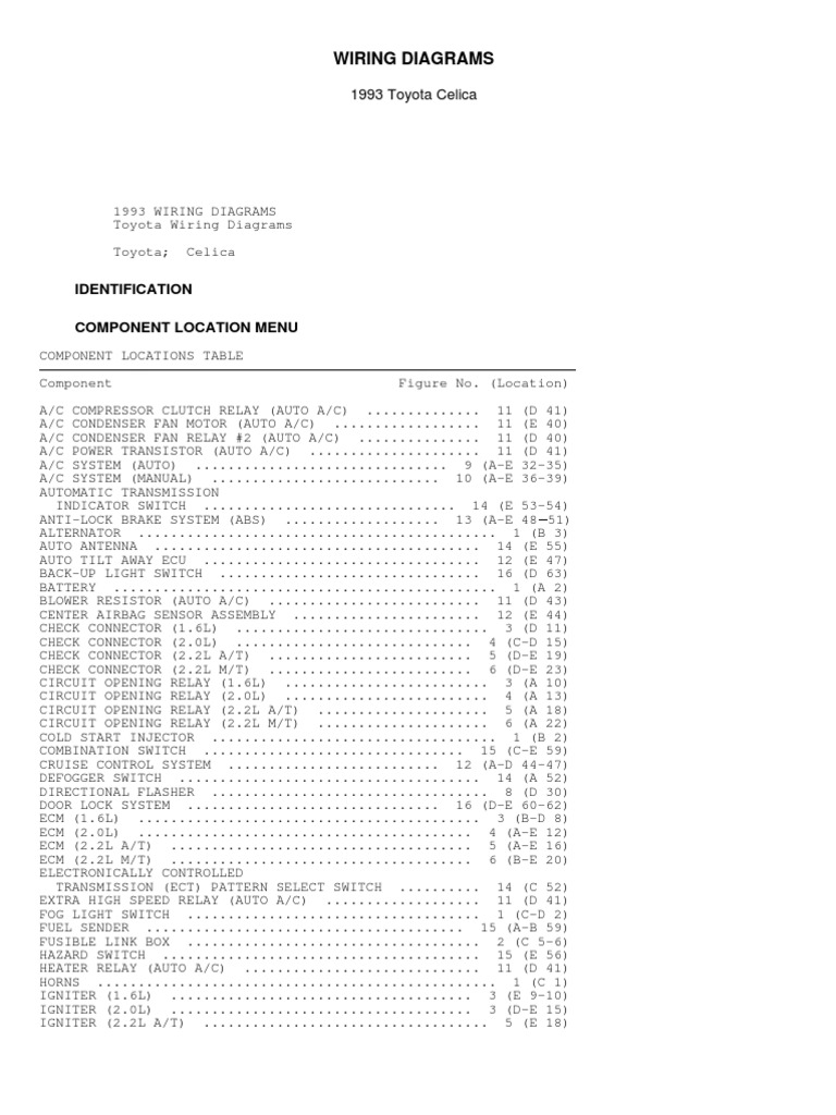 Toyota celica wiring diagram wiring diagram is a simplified okay pictorial representation of an electrical circuit. 2001 celica automobile pdf manual download.