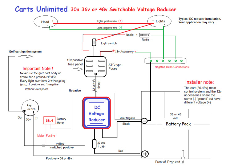Club car voltage reducer wiring diagram. So if you want to have these wonderful images regarding club car voltage regulator wiring diagram. This should match up with the harness yellow wire. Verify the battery pack is a composed of a string of 8 vdc batteries. The right hand passengers side will match up to the green wire. Connect the red wire from the input of the reducer to the positive terminal of the batterys on the golf cart using an eyelet spade or. It shows the elements of the circuit as simplified forms as well as the power and signal connections between the tools.