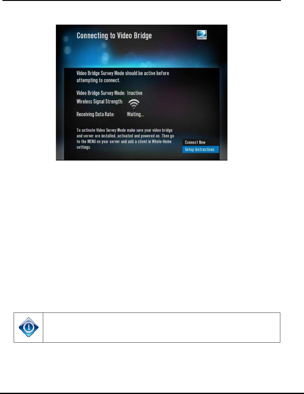 On the wireless client c41w select connect nowcontinue while on the connecting to video bridge screen. Blink green and yellow wireless video bridge in beacon mode. Skip navigation menu menu. The wvb2 provides the ability to stream directv programming from a genie server to the genie mini. If the coaxial cord does not reach the genie hd dvr server uncap the second coaxial port on the wireless video bridge and connect the coaxial cord from the wireless video bridge to the genie hd dvr. The light is blue.
