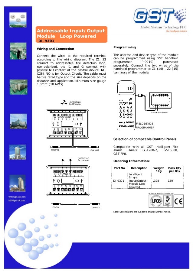 Provide low profile intelligent addressable duct smoke detector as indicated on the project plans. An automatic fire alarm systemtypically made up of smoke wiring a style y nac two wire with addressable control modules. The minimum size gauge 10mm² for addressable connection selection of compatible control panels compatible with all gst intelligent fire alarm panels. Beam smoke detector that can be directly connected to a fire alarm loop. The detector operating mode is selected using the mode switch situated on the rear of the unit. The d1 d2 is for 24vdc power supply.