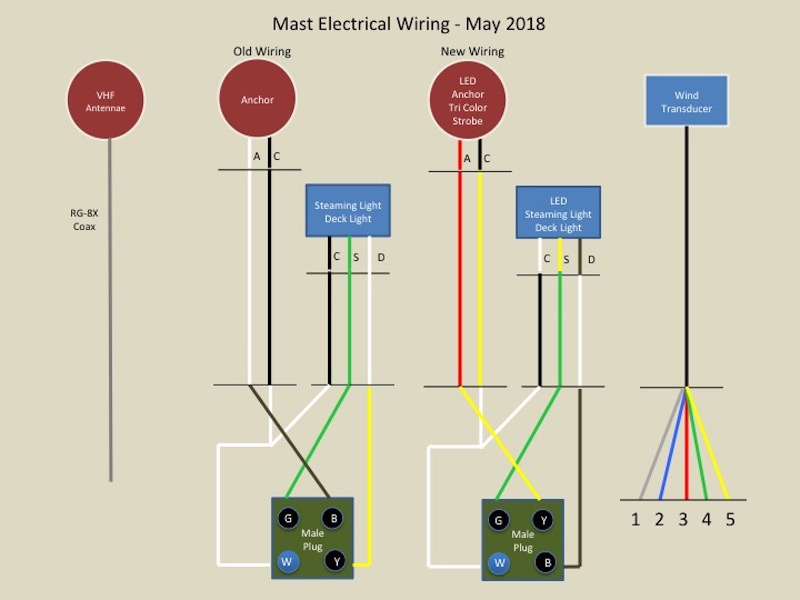 Sailboat mast wiring diagram. In general maximum current is 15 percent less in engine. Airboat installation and service manual mast handbuilt engine owners manual engine management 2008 2012. Thankfully both of my helpful friends were mechanical engineers and were able to engineer up the best method to put a hole in the mast so the mast wouldnt be weakened too much. The next step is to get the power from the house battery up to the switch panel where we can use it to do some good. The main types of mainsheet rigging systems on a dinghy are centre and aft as per the mainsheet rigging diagrams. Two conductors a positive from the battery switch with a fuse and a negative from the ganged together battery negatives should be ran to where the central switch panel is.